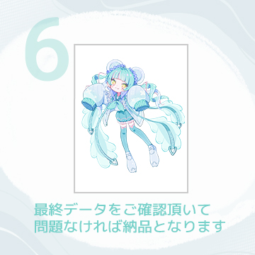 ・リテイク回数について、ラフの段階で「2回」、清書の段階で「2回」までとし、それ以降リテイクが発生する場合は追加料金が発生いたします